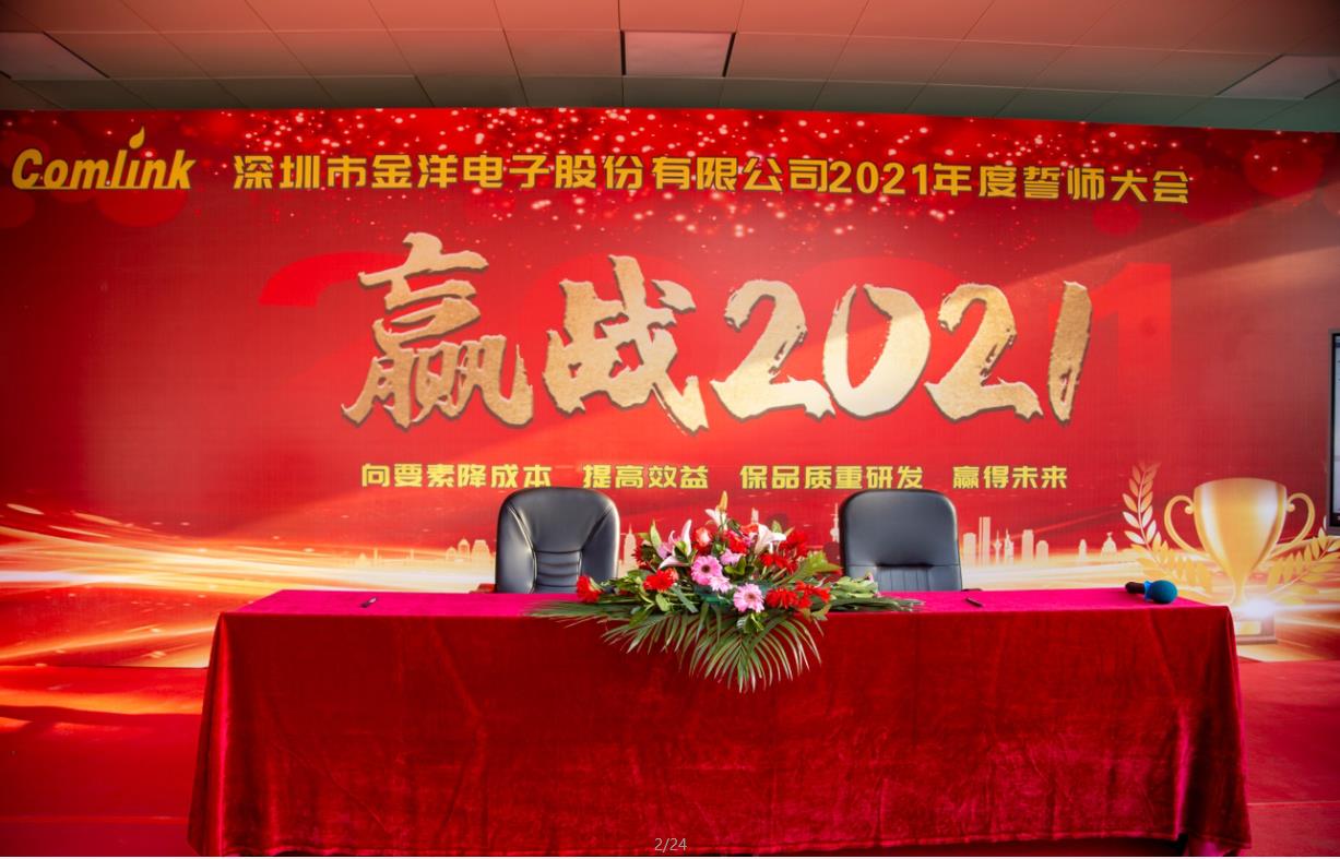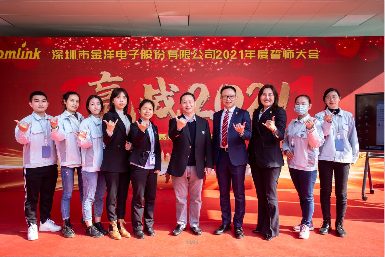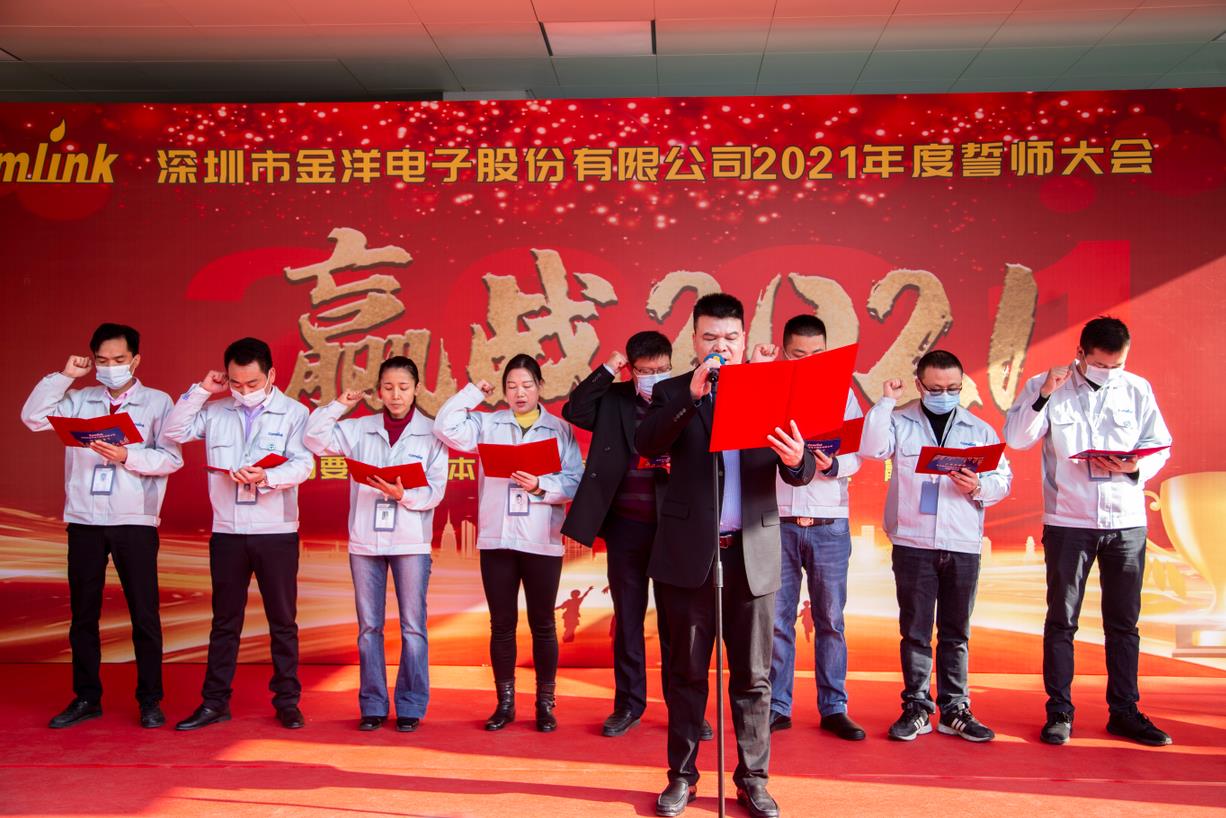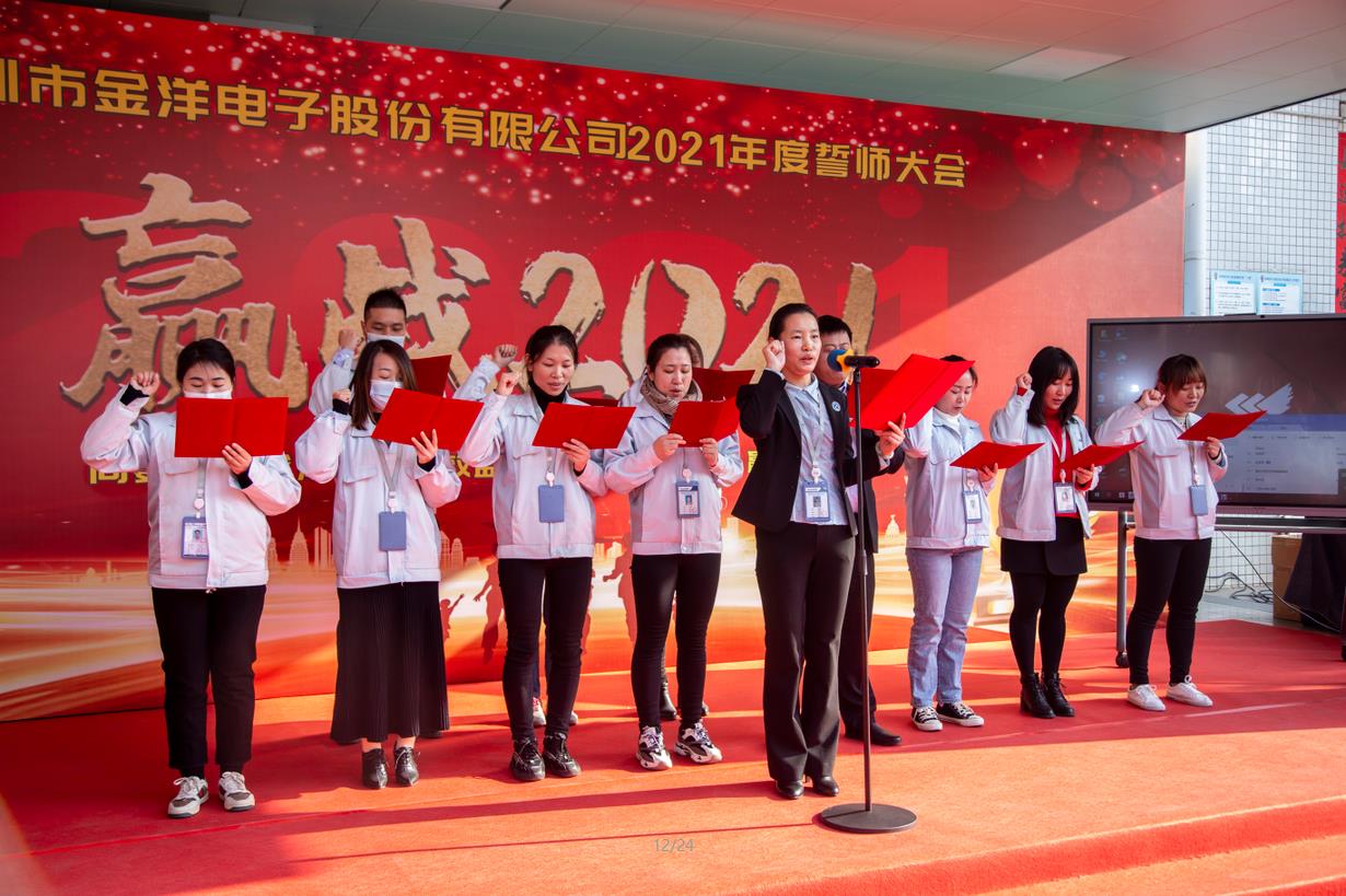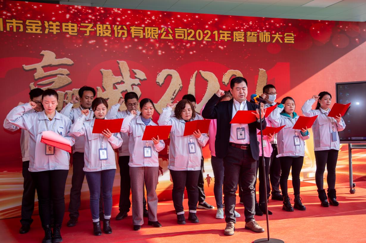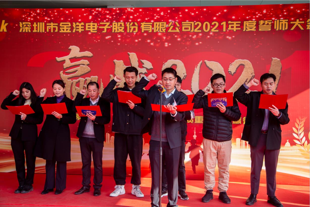 2021年1月14日,深圳市金洋電子股份有限公司年度誓師大會(huì )盛大召開(kāi)。雖已寒冬,但卻陽(yáng)光溫暖,今日誓師,必將贏(yíng)戰2021。