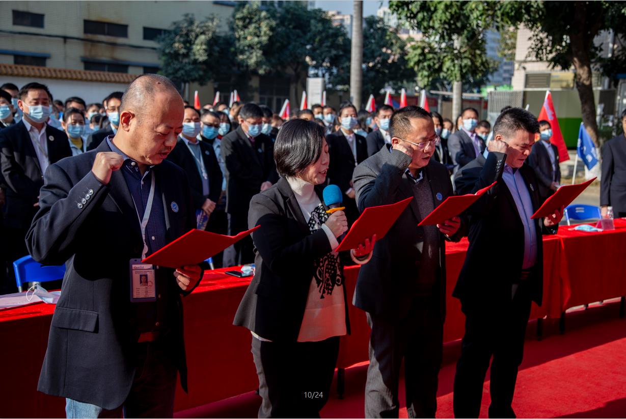 廠(chǎng)務(wù)團隊向陳董、楊總、熊總就廠(chǎng)務(wù)目標宣誓