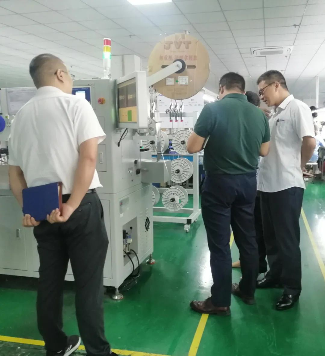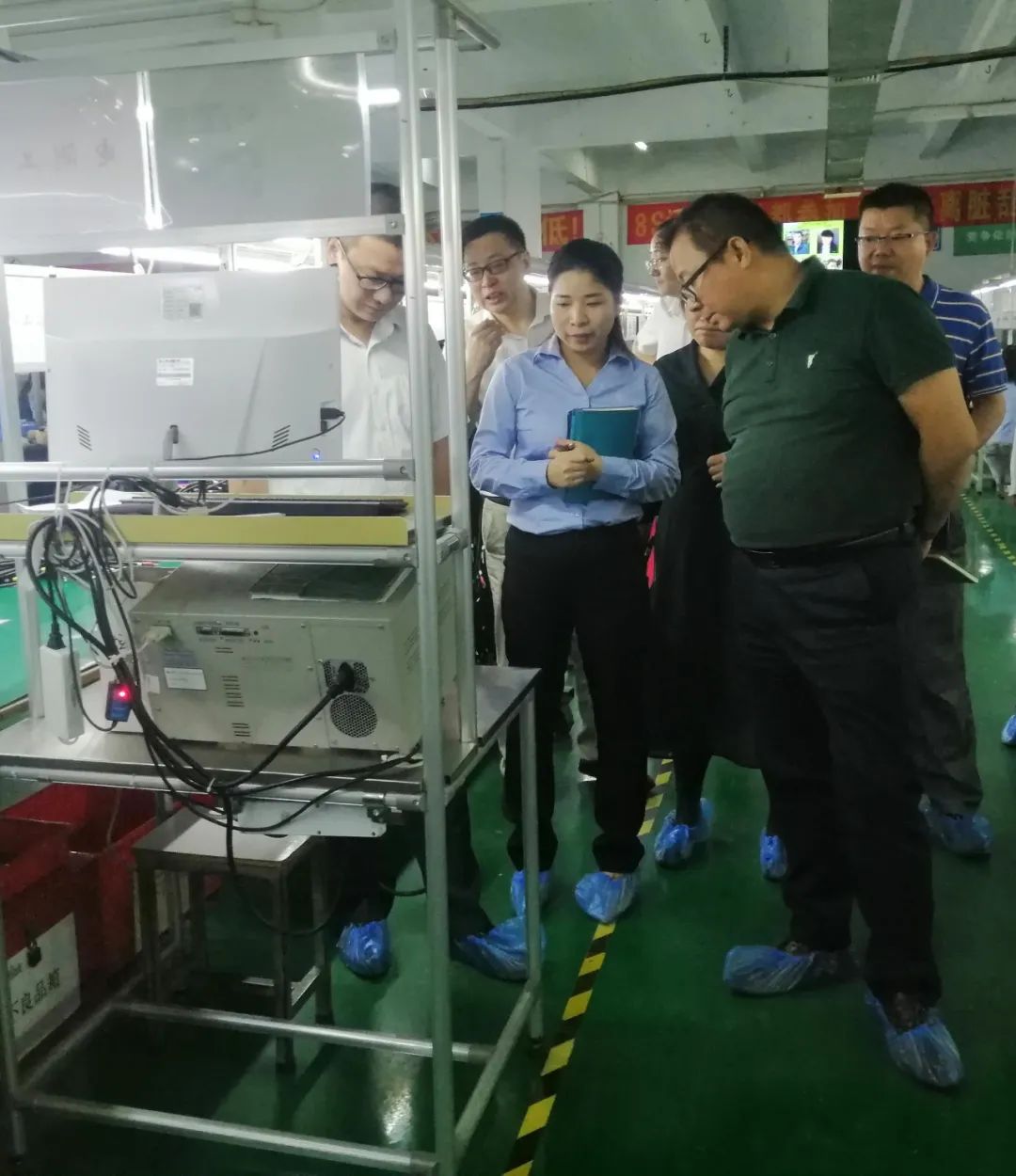 在品質(zhì)部李經(jīng)理的帶領(lǐng)和公司領(lǐng)導高層的陪同下,與華為領(lǐng)導共同到達生產(chǎn)車(chē)間現場(chǎng)進(jìn)行質(zhì)量稽查,品質(zhì)部李經(jīng)理與工程部莊經(jīng)理現場(chǎng)為領(lǐng)導講解生產(chǎn)的技術(shù)要領(lǐng)和自動(dòng)化生產(chǎn)帶來(lái)的品質(zhì)優(yōu)化性和品質(zhì)內部改善效果。