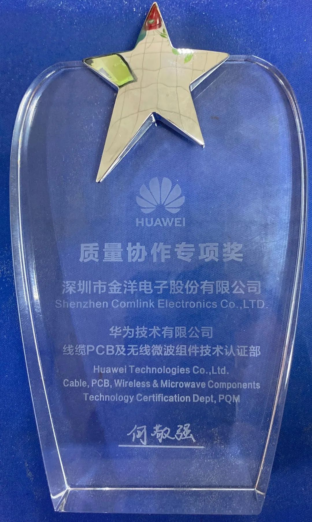 為此,深圳市金洋電子股份有限公司獲得了由華為技術(shù)有限公司線(xiàn)纜PCB及無(wú)線(xiàn)微波組件技術(shù)認證部頒發(fā)的年度《質(zhì)量協(xié)作專(zhuān)項獎》。